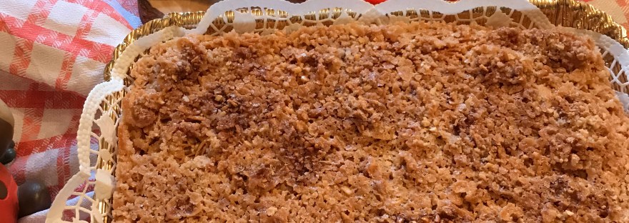 Mettere nel tegame le mandorle coperte di acqua fredda, e portarle quasi al bollore, sbucciarle pestarle con lo zucchero, e dividere il tutto in tre parti uguali,compreso il burro,fare la classica sfoglia e tagliarla in tagliatelle sottili. Mettere nella teglia di (cm.30×20) ricoperta di carta forno qualche fiocchetto di burro e poi aggiungere le tagliatelle in modo verticale,continuare con lo strato di mandorle e zucchero,e sopra distribuire il resto della prima parte di burro continuare per altri due strati, finire al terzo strato con il burro,infornare a 170°per 50/60’con forno statico,trascorso il tempo e la torta sarà diventata di un bel colore dorato toglierla dal forno e scolate tutto il burro sciolto,irrorare bene con il liquore Sassolino, lasciarla riposare per alcuni giorni o anche una settimana finché diventerà molto croccante e infinitamente buona!!
