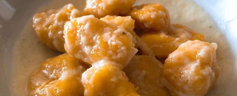 La polpa della zucca compatta e dolce,maturata sotto il sole di luglio e agosto,tanto amata e presente sulle tavole dei Mantovani,ed insieme ad altri ingredienti l’ho utilizzata per preparare gli gnocchi con crema di pera Kaiser anch’essa presente in questa stagione sul nostro territorio.