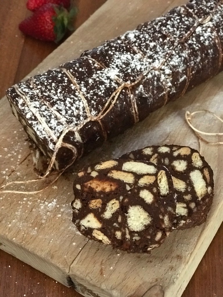 Un dolce facile da preparare perfetto per un fine pasto o per una merenda sfiziosa, mette tutti d’accordo grandi e piccini. I suoi ingredienti molto semplici a base di cioccolato e biscotti secchi,con una forma simile ad un salame.