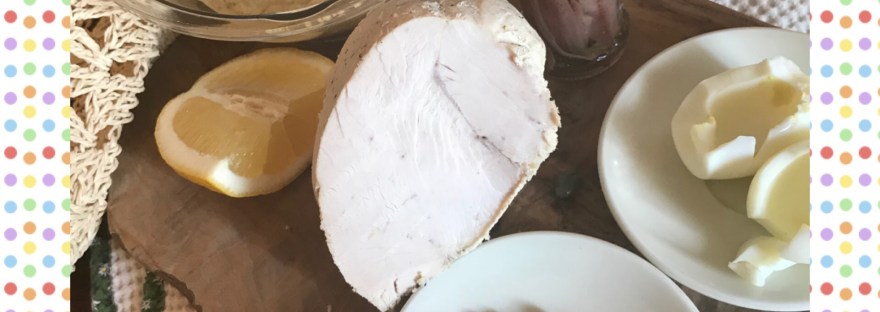 Massaggiare la polpa di tacchino con sale pepe e succo di limone per mantenere sapore, profumo e colore,arrotolare leggermente la carne e legarla con gli anelli elastici(pratici da usare)Infornarlo in forno preriscaldato per 90 minuti a 160°poi ognuno si regoli con il proprio forno comunque controllare sempre la cottura anche con termometro da cucina che al cuore l’arrosto non dovrà superare i 65/70°altrimenti avremo una carne stopposa. Terminata la cottura avvolgere l’arrosto con la pellicola ben stretta e raffreddare in frigorifero per alcune ore,quando sarà ben compattato e raffreddato lo possiamo affettare,pronto per la preparazione del piatto.