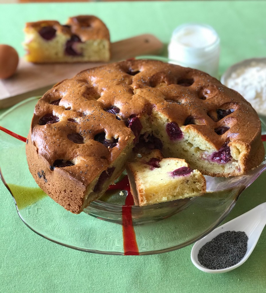 È arrivata la stagione delle ciliegie,succosi frutti tanto attesi,di colore amaranto dal sapore dolce o più asprigno,a secondo la varietà. Usate in cucina per preparare maestosi dolci,come questa semplice torta con l’aggiunta di semi di papavero,un dolce ideale per una merenda estiva o una prima colazione. Le ricette con questi meravigliosi frutti sono ricette senza tempo e un proverbio molto diffuso ci dice: che una ciliegia tira l’altra, ed è proprio vero almeno per me!