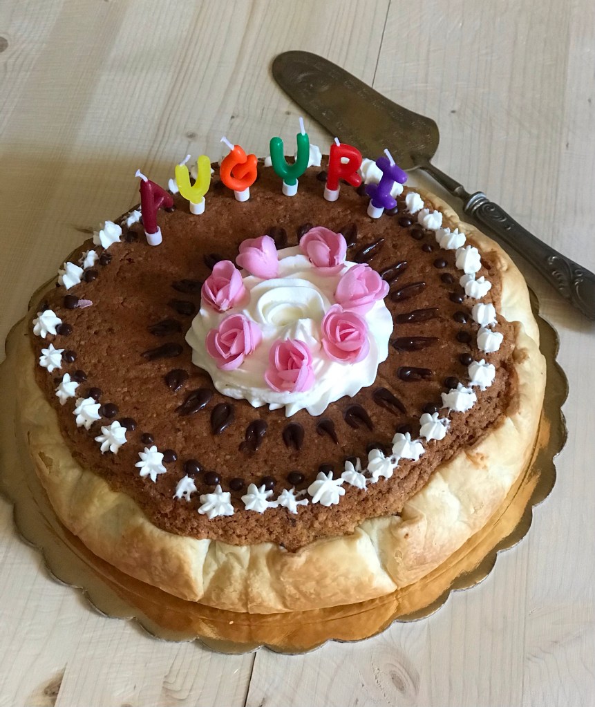 Un dolce facilissimo,squisito si prepara in pochissimo tempo,a base di uova,zucchero,farina,amaretti,mandorle e tutti questi deliziosi ingredienti sono racchiusi da una base di friabile pasta sfoglia.