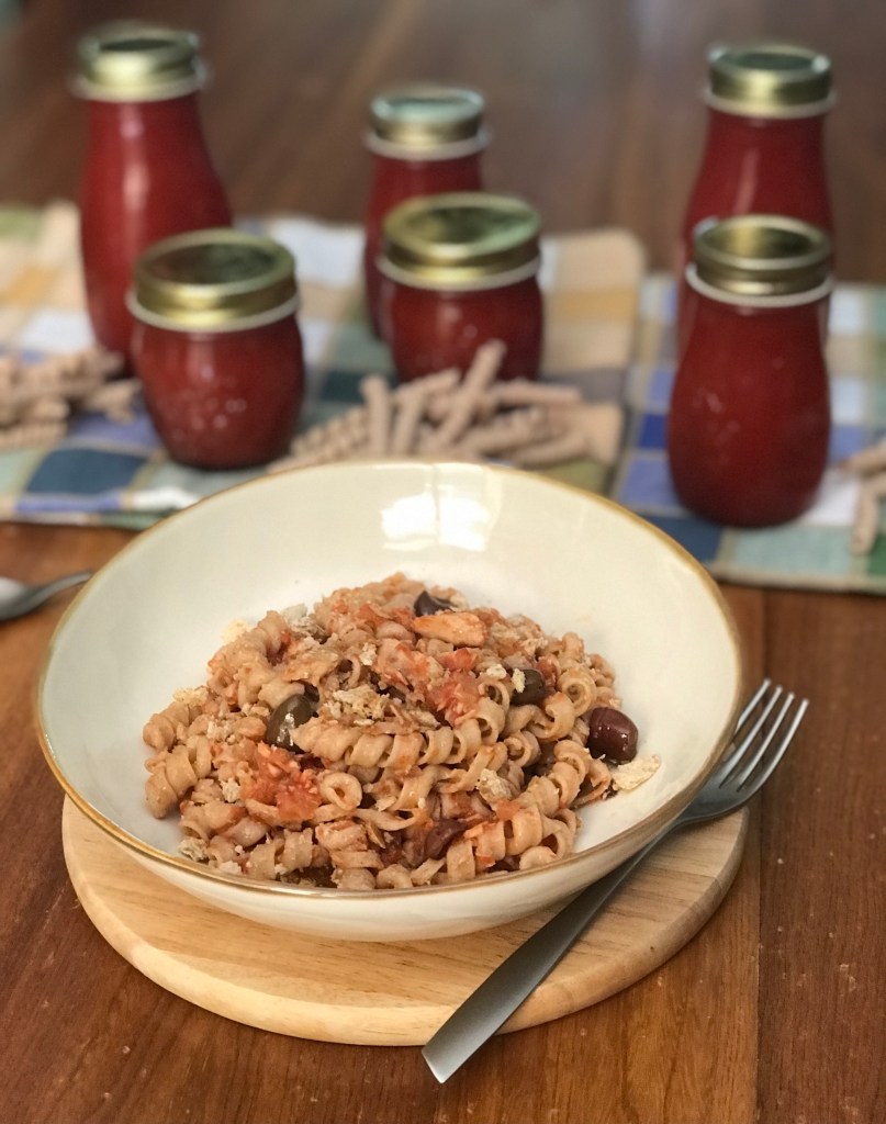 Ecco l’idea di preparare un sugo bello ricco e sostanzioso ma diverso e particolare! Con olio extravergine d’oliva,cipolla di Tropea spicco aglio,semi di finocchio,tonno in vasetto e infine la mia passata di pomodoro,tutto questo andrà a condire una pasta Siciliana: le busiate una pasta fatta con il ferretto che accoglie in modo strepitoso il sugo. Insomma un mix di sapori provenienti dalle varie regioni d’Italia che andrà ad arricchire il nostro piatto,di sapori e profumi