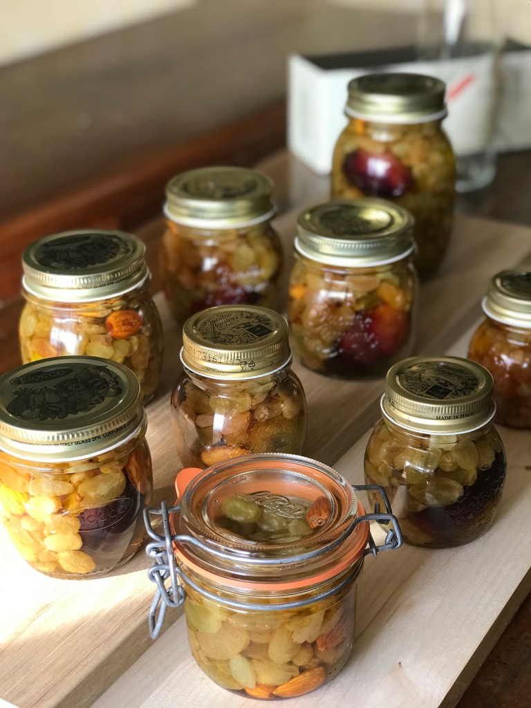 Per ottenere un gusto diverso e particolare,nel vasetto oltre al l’uvetta ho aggiunto anche qualche frutto,come:prugne,fichi e mandorle. (Anche questa frutta naturalmente va lavata e asciugata)