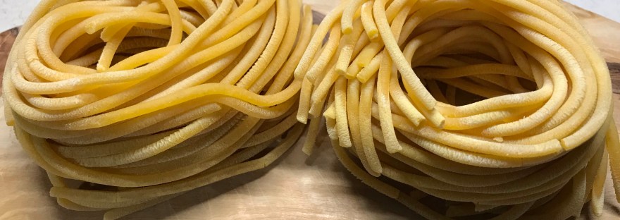 I bigoli sono simili a spaghettoni freschi,fatti con il torchio: una macchina per trafilare la pasta,come le moderne impastatrici domestiche