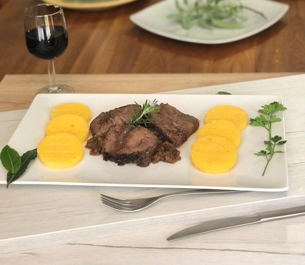 È un secondo piatto di carne morbido,una ricetta che arriva da lontano,appartiene alla tradizione delle nonne. Il taglio di carne deve essere ricco di tessuto connettivo per reggere alla lunga cottura e rimanere morbido,con i suoi sapori corposi che riscaldano le fredde giornate invernali,soprattutto se accompagnato da una gustosa polenta fumante.