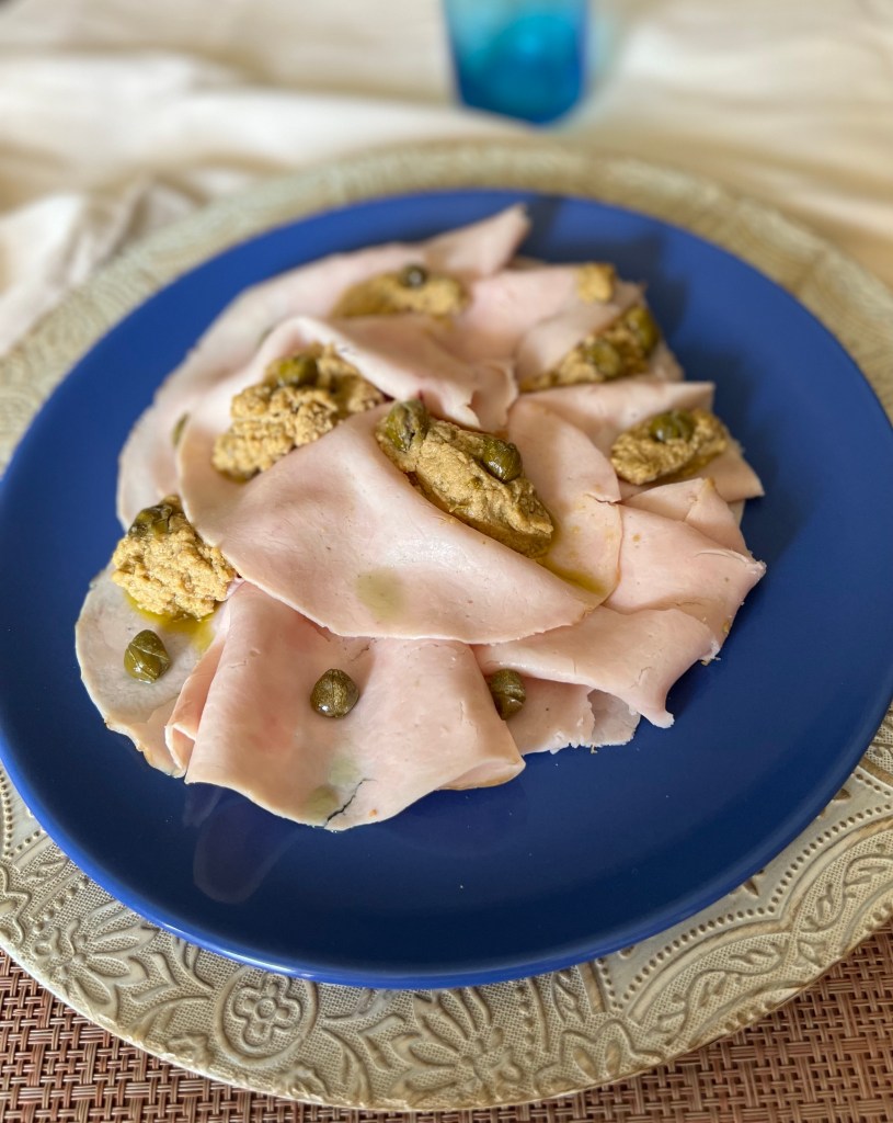 Una ricetta rivisitata e più leggera del classico vitello tonnato, ma altrettanto buona e di sapore. Anche in questa preparazione la carne viene cotta a fuoco lento con aromi, qualche Spezia affinché possa prendere i suoi sapori,