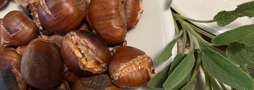 INGREDIENTI Gr 200/250 di ceci già cotti (sgocciolati) Gr 200 di caldarroste o castagne arrostite(già pulite) senza buccia Gr 600 di patate tagliate a qubetti senza buccia per rendere la minestra più densa e cremosa Un mazzetto di salvia,aromatica e profumata,esalta il sapore degli ingredienti l. 2 di brodo vegetale per la base del piatto… Continua a leggere La minestra di ceci, caldarroste, patate e salvia è un piatto caldo, rustico e autunnale ricco di sapori e profumi tipici della stagione.
